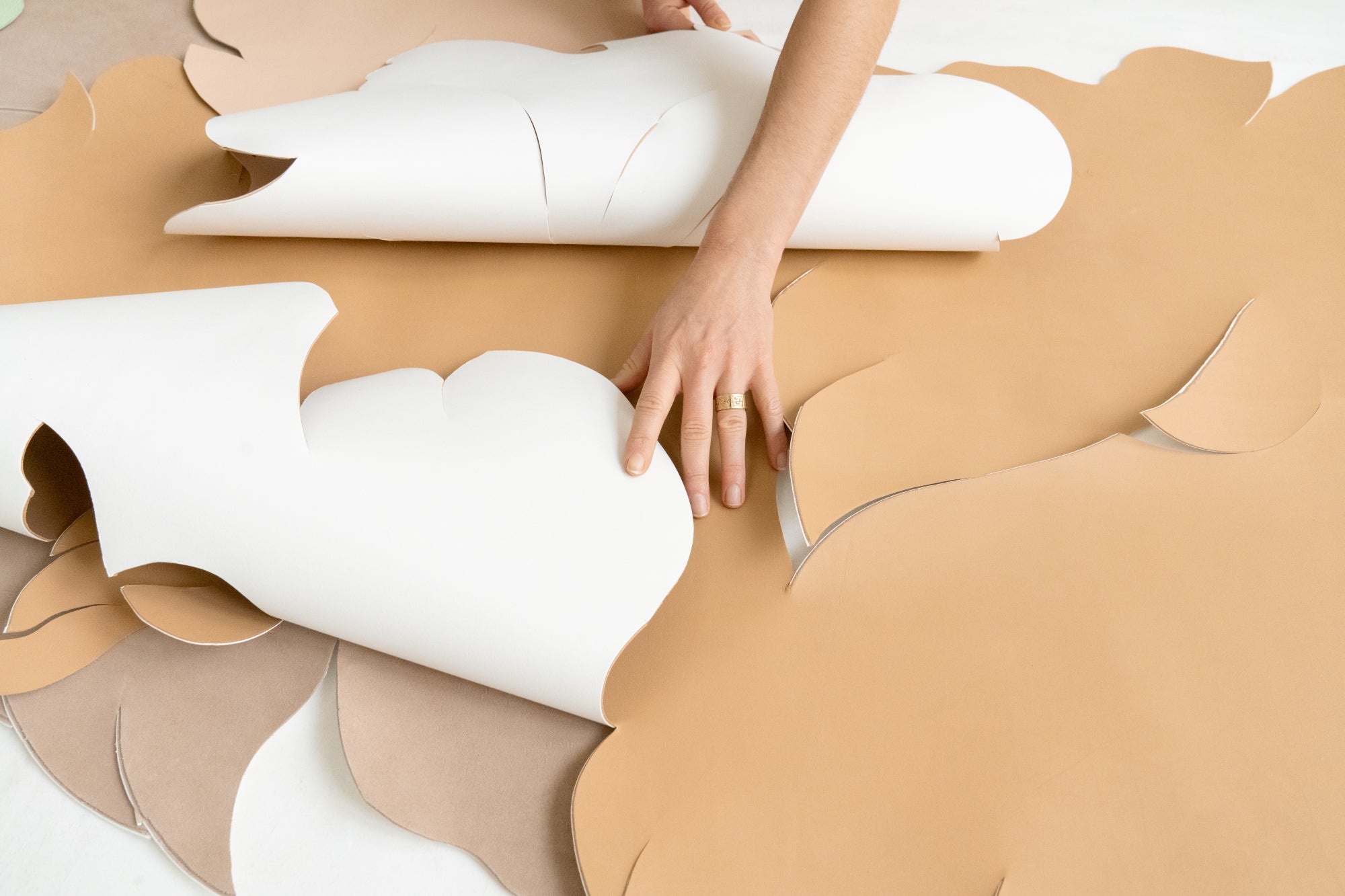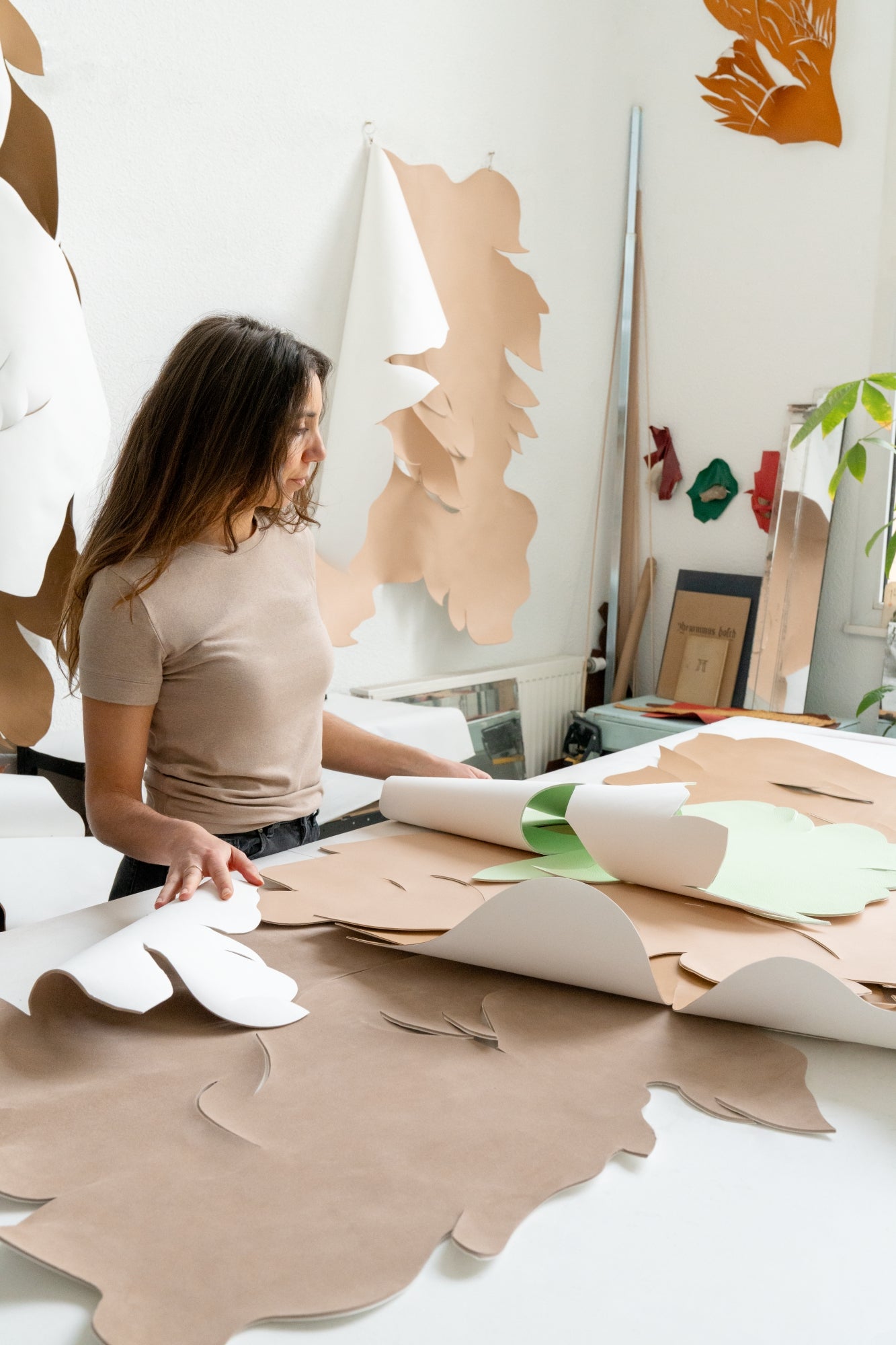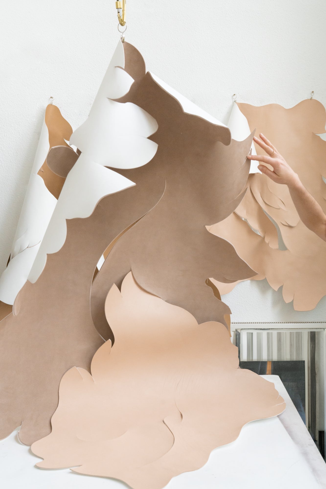 Craftsmanship and creativity are two notions that, once combined, open up a limitless field of exploration. To grasp its full scope, we head to Paris to meet Angèle Guerre. A visual artist, she explores this space every day, where every gesture and tool is welcome. Her preferred materials: leather and paper, which she cuts with a scalpel to create airy sculptures that unfold like wings. These are works of precision and patience, in which each cut determines the next, and every detail finds its place with infinite accuracy. For this new chapter of our “L’Art du Savoir” series, we invited her to take over our window on Boulevard des Capucines and imagine a new setting for our creations. Before discovering her installation, we stopped by her studio in the Oise region, where we took the opportunity to ask her a few questions.
