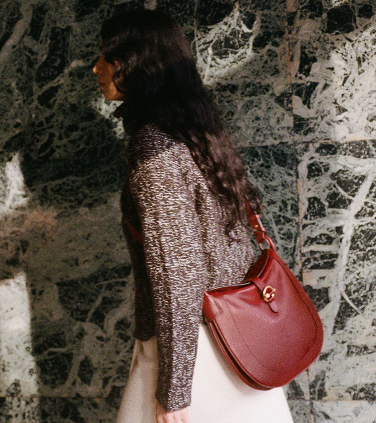 Available in a small crossbody format and a large hobo format, Pia plays with eras by blending historical refinement with modern functionality. This reveals a new engraved signature clasp, elegant curves, and the iconic anniversary lining developed for the House's 125th anniversary.